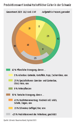 Wichtiger als die flächenmässige Ausdehnung eines Betriebszweigs ist für die Bäuerin, den Bauern das daraus erwirtschaftete Einkommen. Auch in dieser Beziehung ist die Bedeutung des Futterbaus gross. Anders als bei den Flächenangaben lässt sich die ökonomische Bedeutung jedoch nicht direkt aus verfügbaren Statistiken ablesen. Der Gesamtwert der Produktion landwirtschaftlicher Güter lag 2023 bei 10.2 Mrd. CHF (Schätzung).