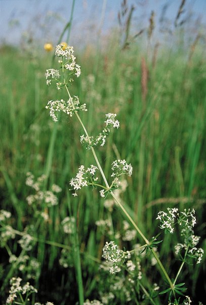 Tige quadrangulaire avec des feuilles verticillées, coriaces et lancéolées. Fleurs fines et blanches en été et en automne.