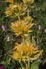 - La gentiane jaune peut se développer fortement dans les pâturages et parfois aussi dans les prés de fauche extensifs lorsque les conditions lui sont favorables ; elle prend alors la place des bonnes plantes fourragères et nuit au rendement fourrager.