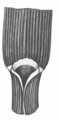 - Ligule courte, vert à brun.