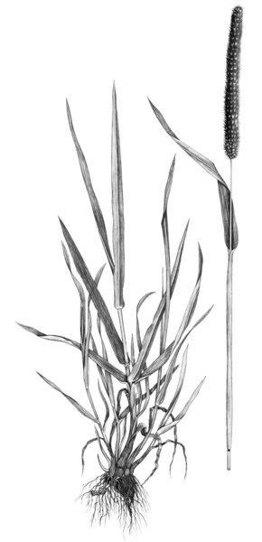 - Tige terminée par un épi cylindrique. Épillets en forme de bottes, à deux pointes (≠ vulpin des prés) avec parfois une courte pointe de barbe. Floraison tardive (juin).