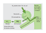 A l’inverse de la plupart des autres plantes cultivées, les légumineuses sont en mesure d’utiliser l’azote de l’air (N2) dans leurs nutriments. Cette particularité provient de la symbiose avec des rhizobactéries (Rhizobium). Celles-ci forment des nodosités visibles à l’œil nu sur les racines (image).