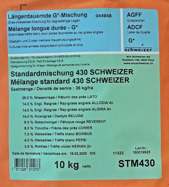 Le mélange contenant du dactyle (Mst 430) convient aux régions plutôt séchardes. Il se prête moins bien pour la pâture.