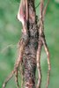 - Apparato radicale costituito principalmente da un grosso e lungo fittone fusiforme. Da gemme poste appena sotto la superficie del suolo, la pianta madre è in grado di generare nuove plantule, dotate di radici e foglie basali proprie. Ciò fa sì che si formino veri e propri nuclei famigliari, comprendenti fino a 30 fusti in fiore.