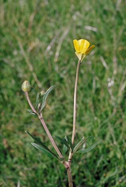 Pianta pubescente (≠ dalle altre specie di ranuncolo); sepali deflessi (ripiegati bruscamente verso il basso) dopo l’inizio della fioritura (≠ dalle altre specie di ranuncolo). Appena sotto la superficie del suolo, la base del fusto s’ingrossa, assumendo un aspetto bulbiforme.