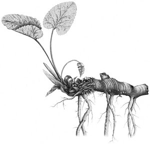 - caratterizzato da un rizoma ispessito, ritorto, e ramificato, che si sviluppa orizzontalmente nel suolo anche per 30 cm di lunghezza (≠ dal romice comune),