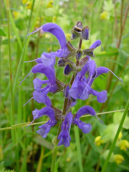 - Il colore dei fiori varia da blu scuro a violetto; più raramente da rossastro a bianco. Raccolti in falsi verticilli a formare un racemo, i fiori sono caratterizzati dalla presenza di un petalo superiore vistosamente falciforme. Fiorisce in primavera e in estate.