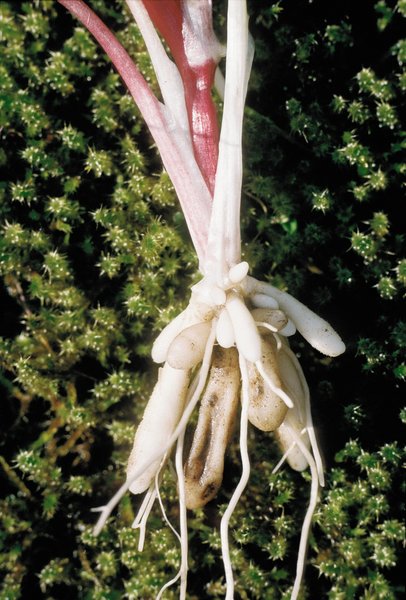 - Sviluppo di un apparato radicale che consenta di accumulare rapidamente grandi quantità di nutrienti facilmente disponibili nel parenchima di riserva di: radice a fittone, rizoma, base del fusto bulbiforme, radice tuberizzata o bulbo.