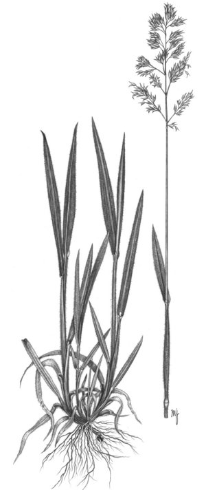 - Fusti di taglia media, con una pannocchia compatta che si espande solo in fioritura, nella tarda primavera. Spighette numerose, ricoperte da una fitta peluria, di colore prima grigio-verde, poi tendente al rosso.