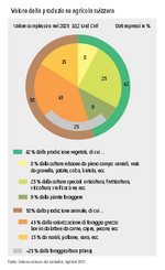 In Svizzera, prati e pascoli forniscono, di gran lunga, la maggior parte del foraggio grezzo destinato agli erbivori domestici. Questo foraggio rappresenta il principale fattore di produzione per l’allevamento. La sua valutazione economica è tuttavia difficile da fare, perché non è possibile suddividere con sicurezza il valore della produzione animale tra le voci allevamento e produzione di foraggio grezzo.