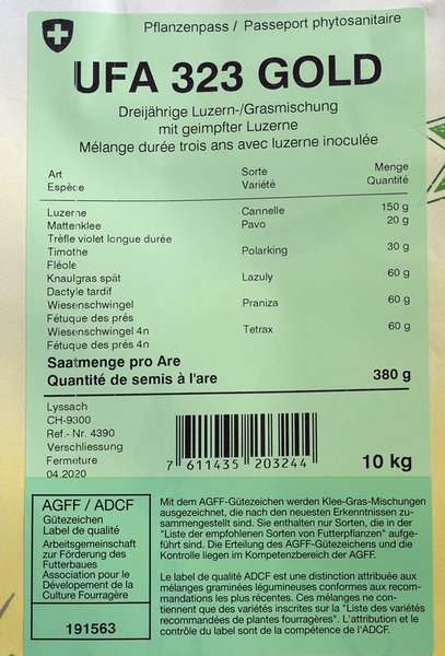 Le miscele a base di graminacee ed erba medica (Mst 320, 323, 325 e miscele equivalenti commercializzate con nomi diversi) sono contraddistinte dal marchio di qualità APF di colore verde su cui campeggia la lettera «L».