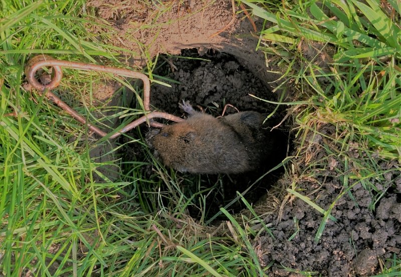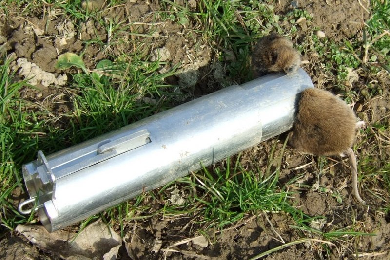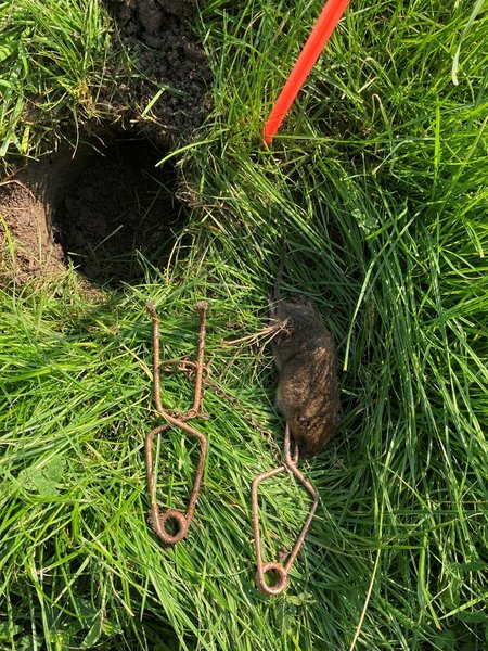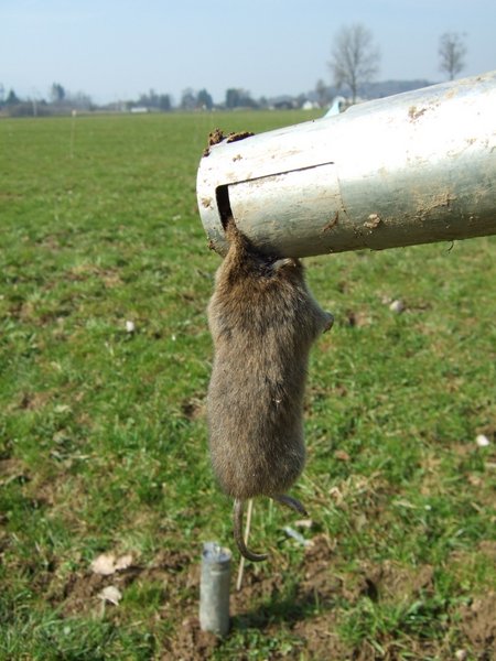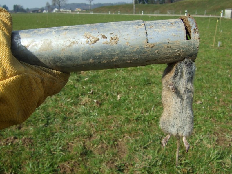 • Fallenfang: Mit einem zum Fallentyp passenden Lochschneider wird ein Laufgang geöffnet und die Eingänge von Erdkrümeln befreit. Anschliessend werden die Fallen gestellt, die künstliche Gangöffnung zugedeckt und die Stelle gut sichtbar markiert. Mit geeignetem Werkzeug können Schermäuse sowohl mit althergebrachten Drahtfallen (z.B. Ringlifalle oder Bayrische Drahtfalle) als auch mit den zylinderförmigen Topcat-Fallen gefangen werden.