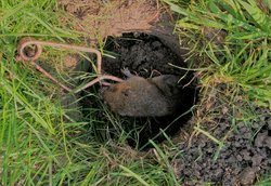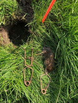 Für die Schermaus-Bekämpfung braucht es Zeit und geeignetes Material. Mit einem Suchstab muss ein unterirdischer Laufgang in der Nähe von Maushaufen gefunden werden.