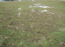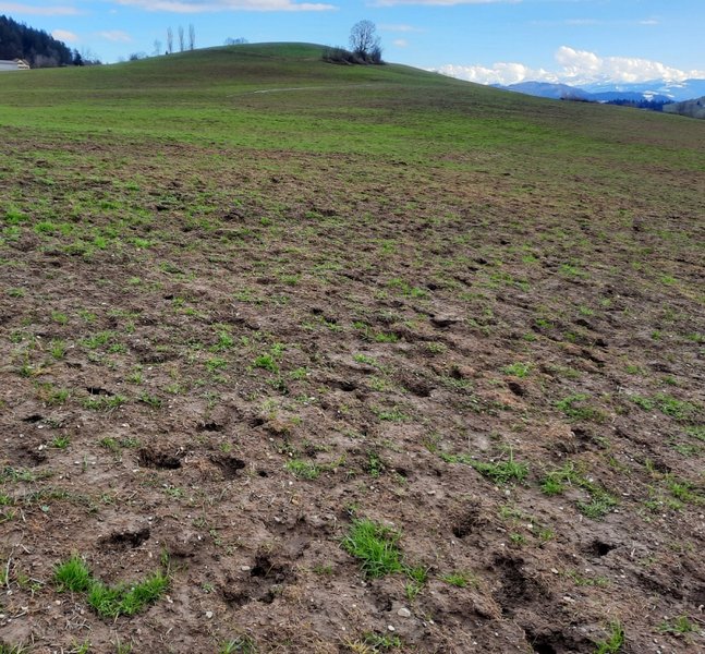 Die Hauptschäden im Grasland verursachen die aufgestossenen Erdhaufen. Durch sie entstehen Lücken in der Pflanzendecke, welche von unerwünschten Pflanzen besiedelt werden. Wo ein Massenbefall vorkommt, wird die Fläche erdig braun, der Ertragsausfall gravierend. Mäh- und Erntearbeiten sind erschwert, das Futter verschmutzt, die Silage wird durch Fehlgärungen gefährdet.
