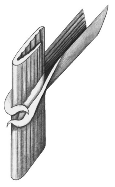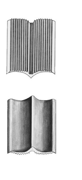 • Blätter oberseitig stark gerillt, unterseitig glänzend (auch aus Distanz gesehen auffällig), sichelförmig schmales Blattöhrchen.