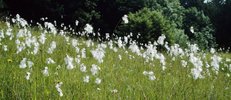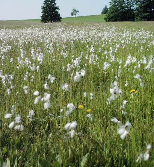 Vorwiegend in Braunseggen-Rieden aller Höhenstufen findet sich das nahe verwandte, ebenfalls vielerorts geschützte Schmalblättrige Wollgras Eriophorum angustifolium. Es weist nach dem Blühen besonders auffällig lange, weisse Woll-Köpfchen auf.