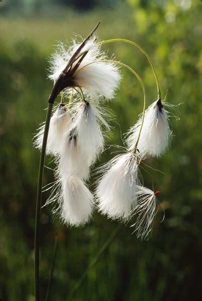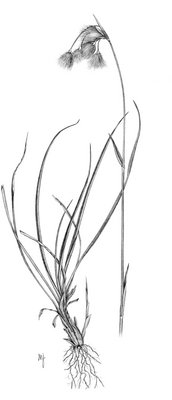 Ein Stängel trägt einen Blütenstand mit mehreren Ährchen, die nach dem Blühen überhängen und als als weit sichtbare weisse, wollige Köpfchen leuchten. Hellgrüne grasartige Blätter (bis 8 mm breit) enden in einer kurzen, dreikantigen Spitze.