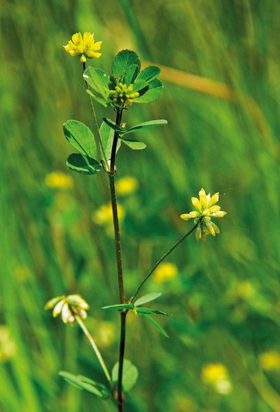 Pflanze hat niederliegende oder aufsteigende, meistens verzweigte Stängel. Blätter mit 3 Teilblättchen, das mittlere gestielt, ohne Spitze (≠ Gelbklee / Hopfenklee, ≠ Luzerne-Arten). Viele Blüten in lockerem, kleinem Köpfchen, hellgelb, verblüht hellbraun.