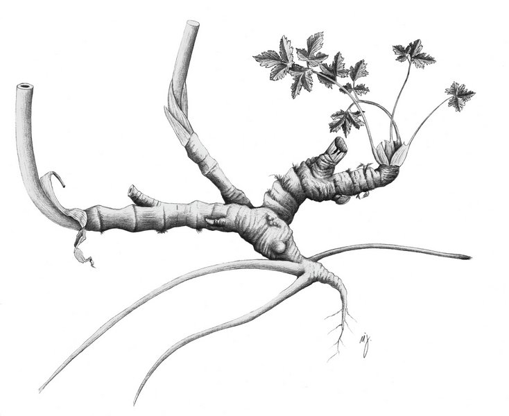 - Bewurzelung: Flach im Boden liegender, stark verzweigter Wurzelstock, mit mehreren Köpfen.