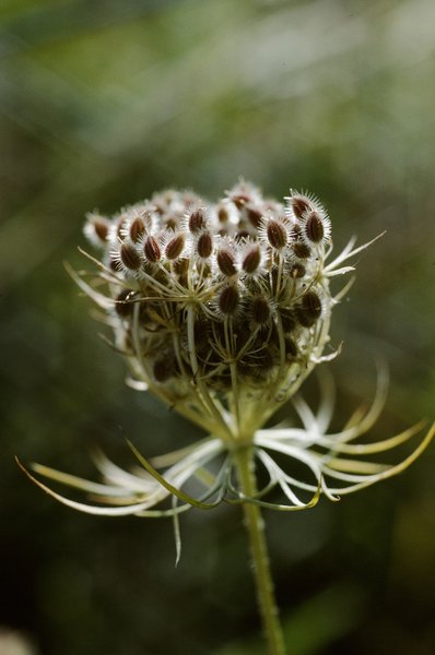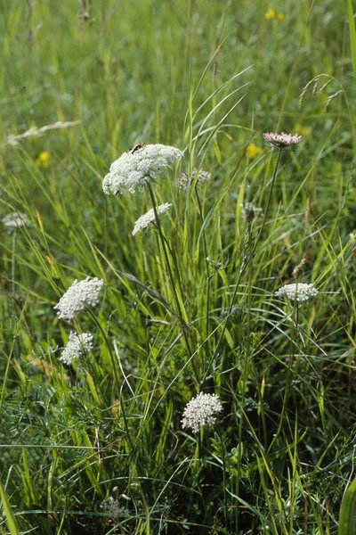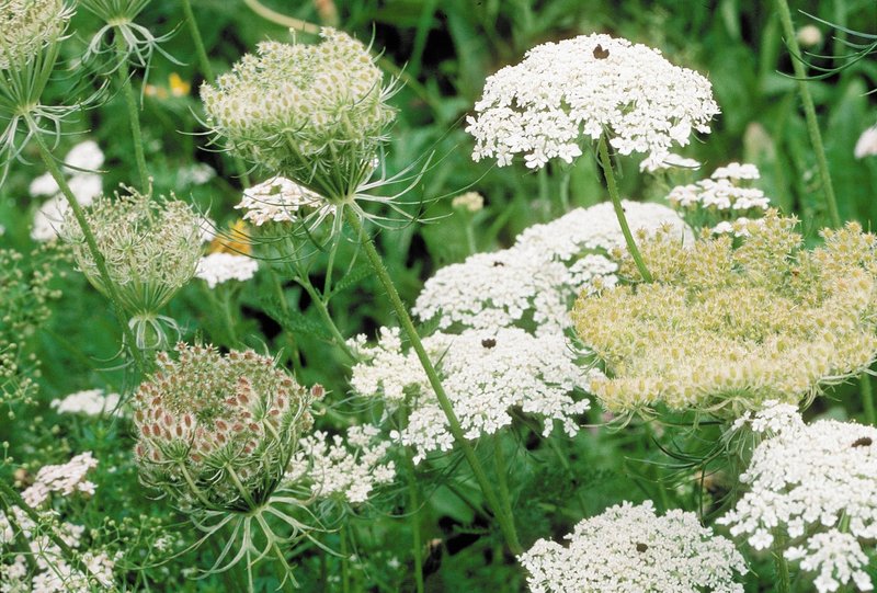 Zerriebene Wurzelteile und Blätter riechen deutlich nach Karotten. Mitten in den weissen Blüten fällt oft eine purpur-schwarze Blüte auf. Verblühte, Samen tragende Dolden ziehen sich zu einem «Vogelnest» zusammen.