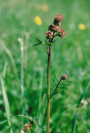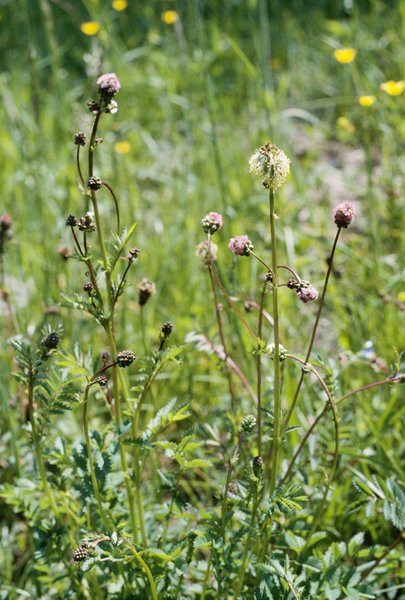 Blätter einfach gefiedert, unpaarig; Teilblättchen fast rund, grob gezähnt, am Blattstiel sitzend oder nur sehr kurz gestielt (≠ Grosser Wiesenknopf). Blütenstände kugelig, grün-rot (≠ Grosser Wiesenknopf).