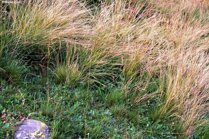Die sogenannt «strenge» Ausbildung des Typs ist artenarm. Hier dominiert das dicht stehende Borstgras und das Futter ist von sehr geringer Qualität.