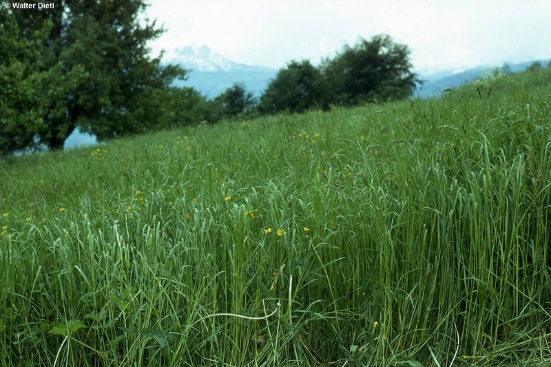 - Wenn dieser Wiesentyp immer wieder zu häufig gemäht wird, kann sich das Italienisch-Raigras nicht erneuern. Geringwertige Arten wie Gemeines Rispengras, Ausläufer-Straussgras und Kriechender Hahnenfuss nehmen überhand, der Ertrag wird schwach.