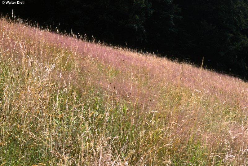 Die Rotschwingel-Straussgras-Wiese gehört zur Intensitätskategorie der Wenig intensiv bewirtschafteten Bestände.